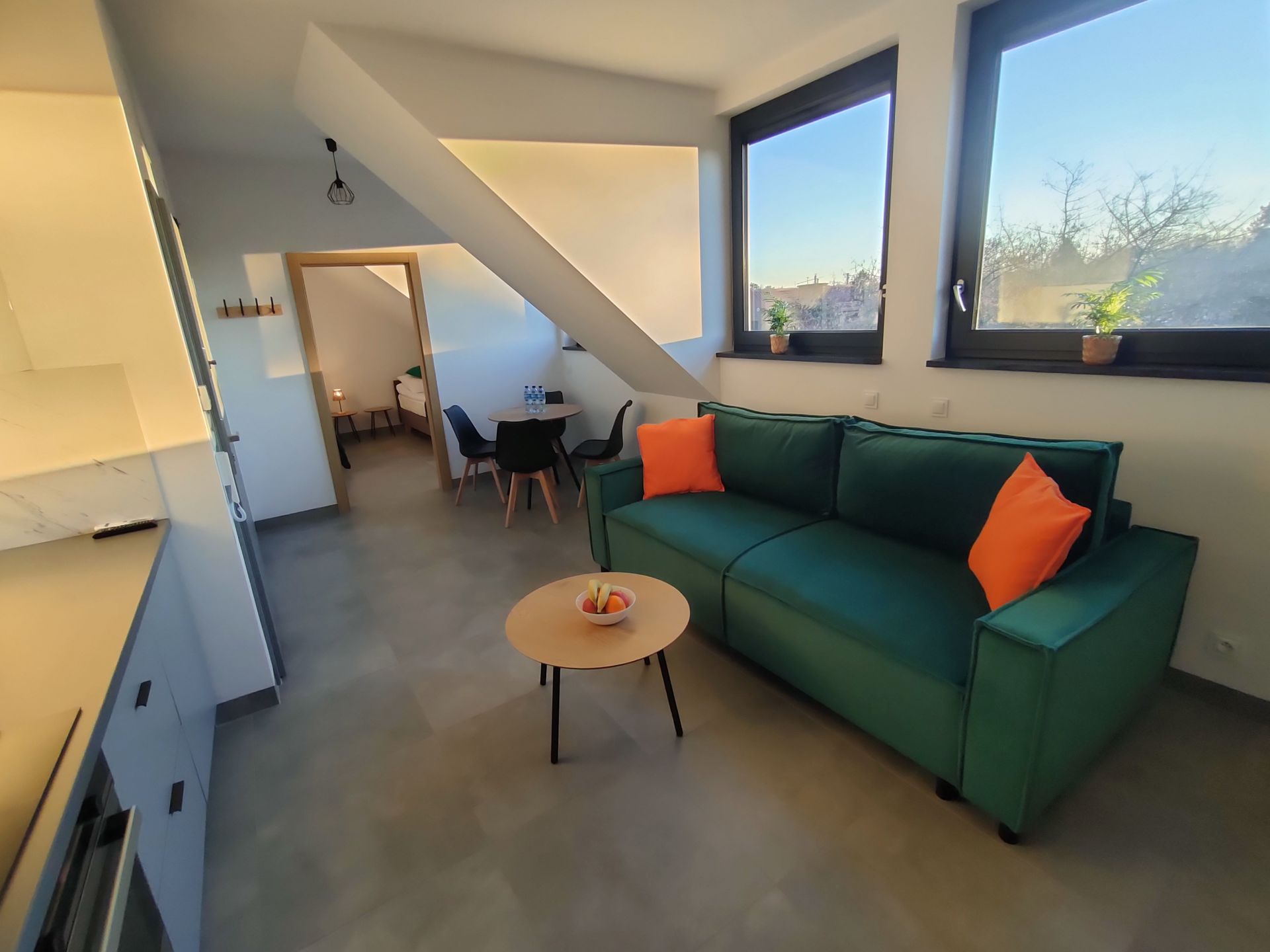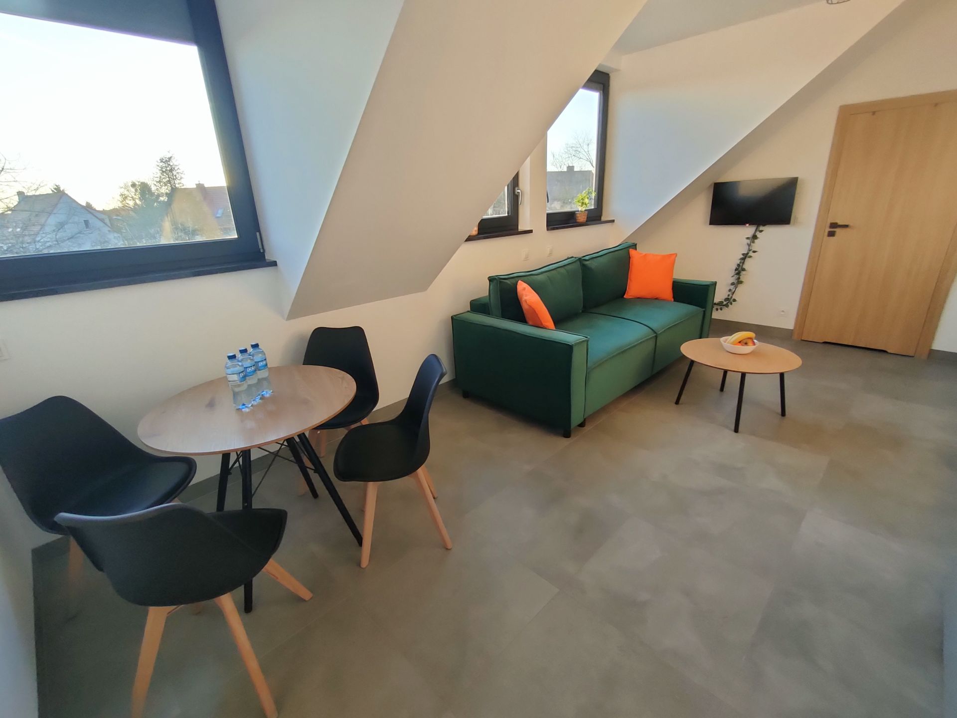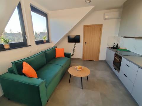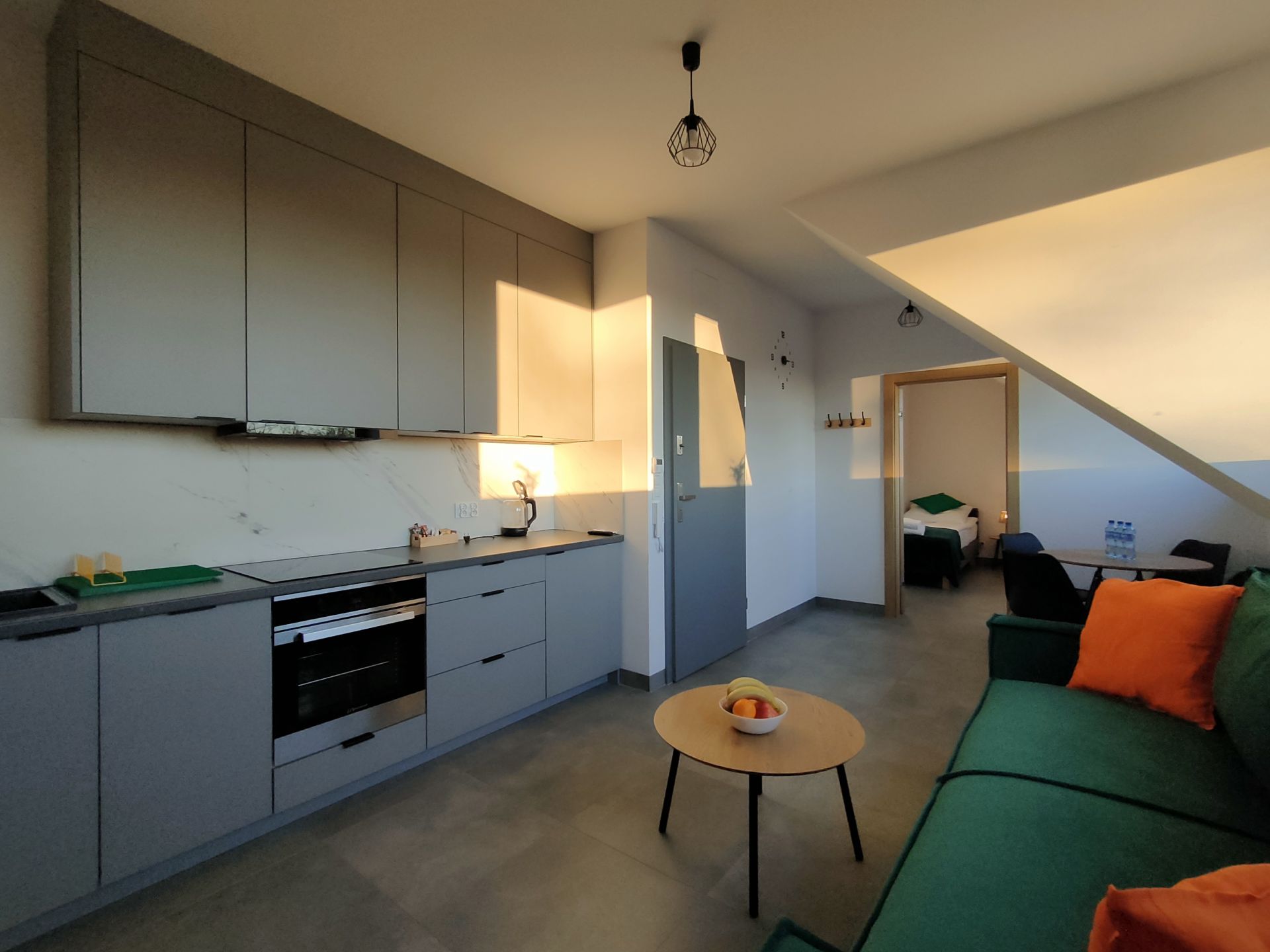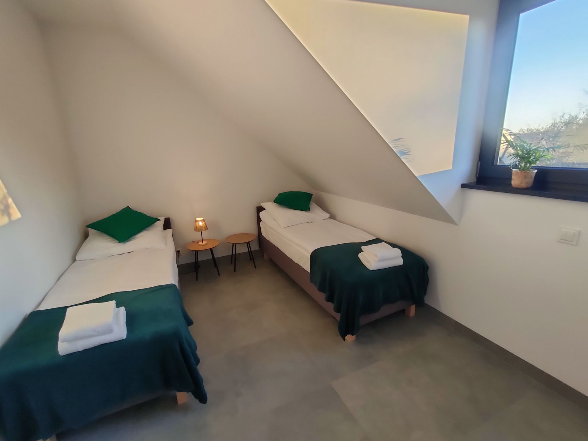 Mieszkanie jest dwupokojowe w którym się znajduje sypialnia z 2 pojedynczymi łóżkami oraz pokój dzienny z rozkładaną sofą z łazienką i kuchnią. Mieszkanie jest z  przygotowaną świeżą pościelą i ręcznikami. W mieszkaniu jest telewizor oraz dostęp do internetu Wifi.