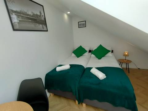 Mieszkanie jest Jednopokojowe z łazienką i kuchnią. W mieszkaniu jest jedno łózko dwu osobowe przygotowane ze świeżą pościelą i ręcznikami. W pokoju jest telewizor oraz dostęp do internetu Wifi.