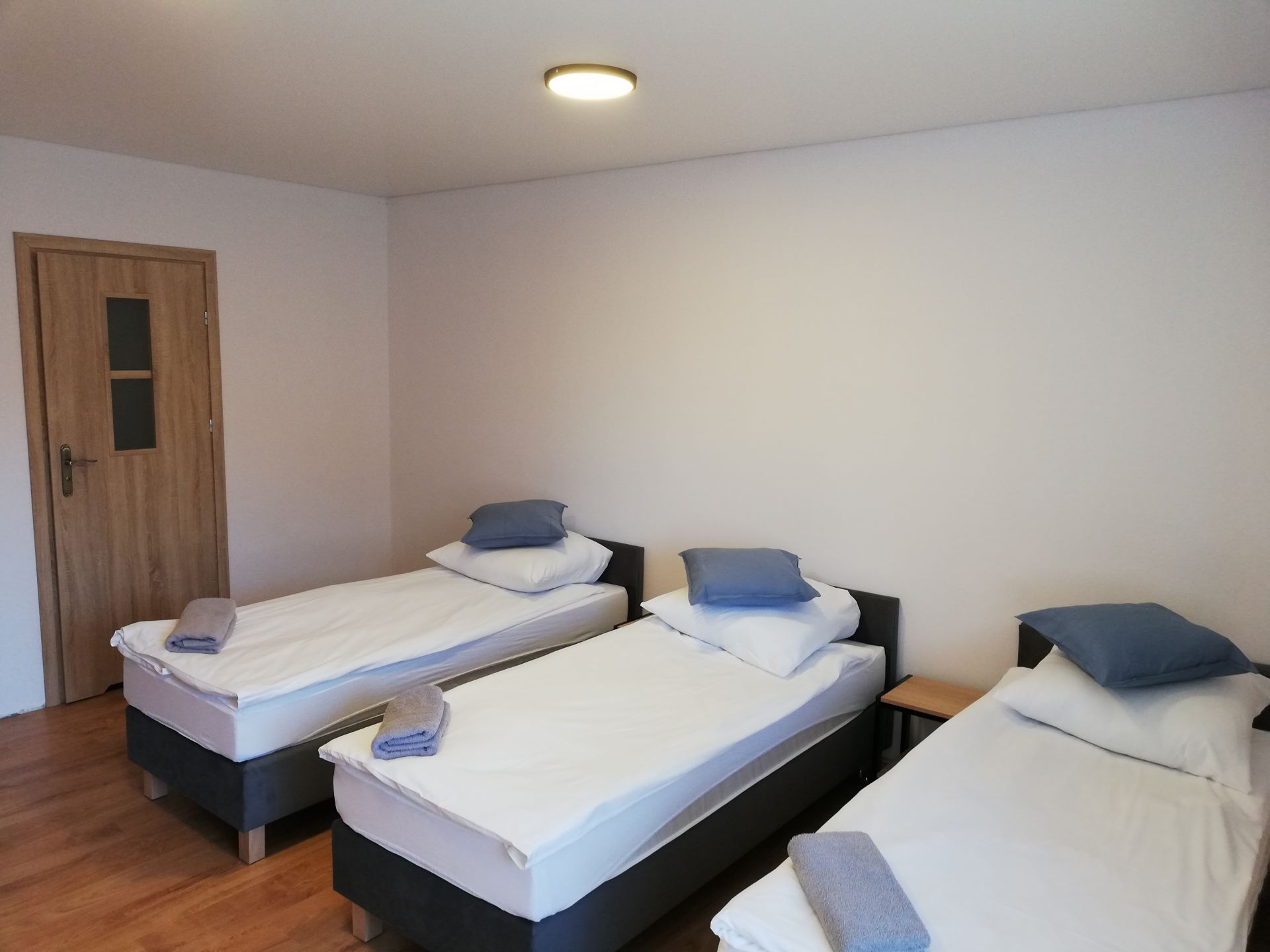 Pokój zlokalizowany w prywatnym domu na pierwszym piętrze o powierzchni 18m2. W pokoju goście mają do dyspozycji prywatną łazienkę z prysznicem i czystymi ręcznikami, trzy osobne łóżka z czystą i świeżą pościelą. Pokój jest przewidziany dla max. 3 osób w którym jest lodówka. Dostępny jest również wspólna kuchnia wyposażona w podstawowe sztućce, naczynia, garnki i patelnie. W części wspólnej jest też pralka i mikrofalówka.